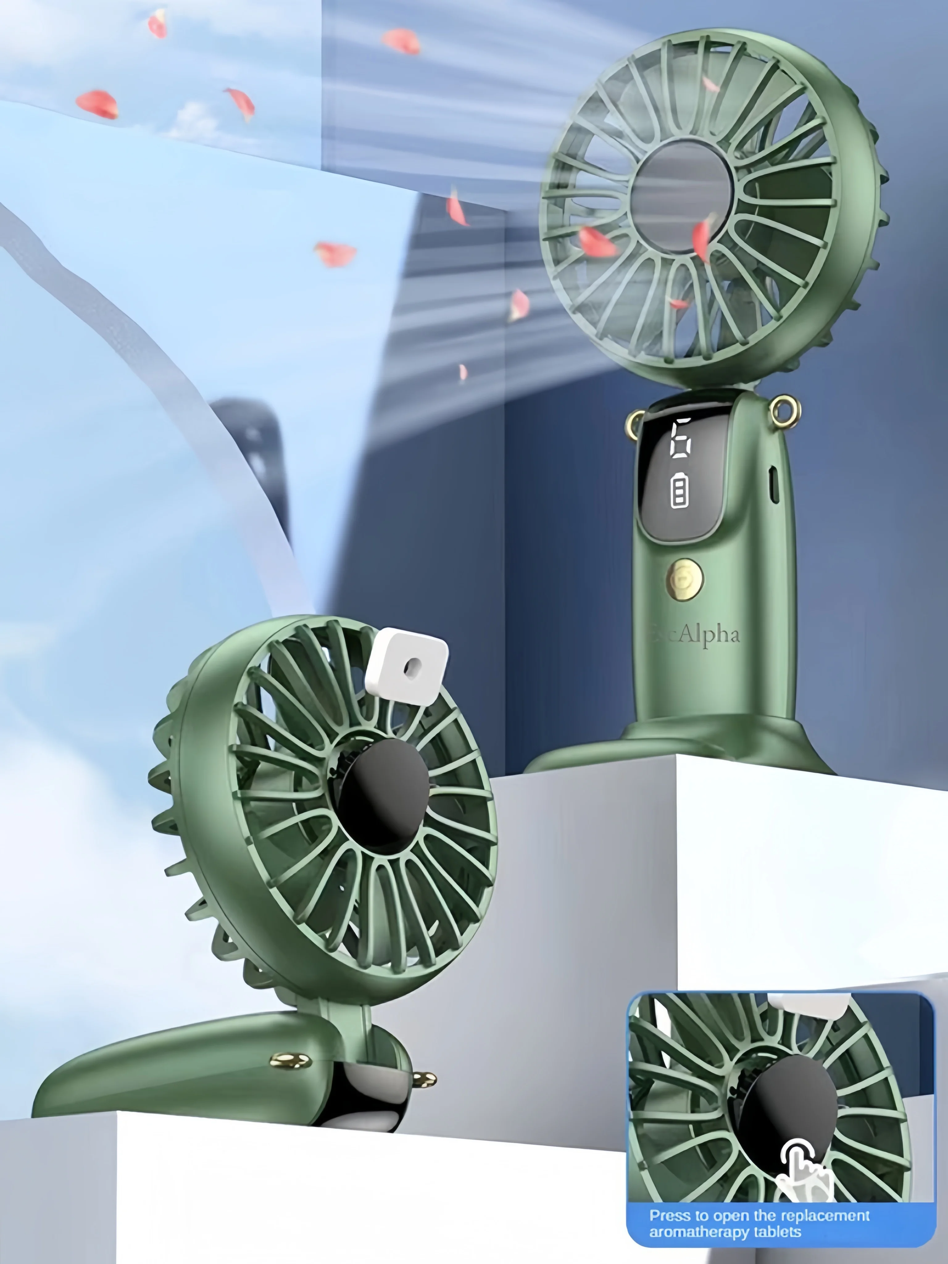 1 Portable Mini Fan with LED Display, Neck Fan, USB Rechargeable Handheld Fan, 6 Wind Adjustments, 180 Degree Foldable, Battery