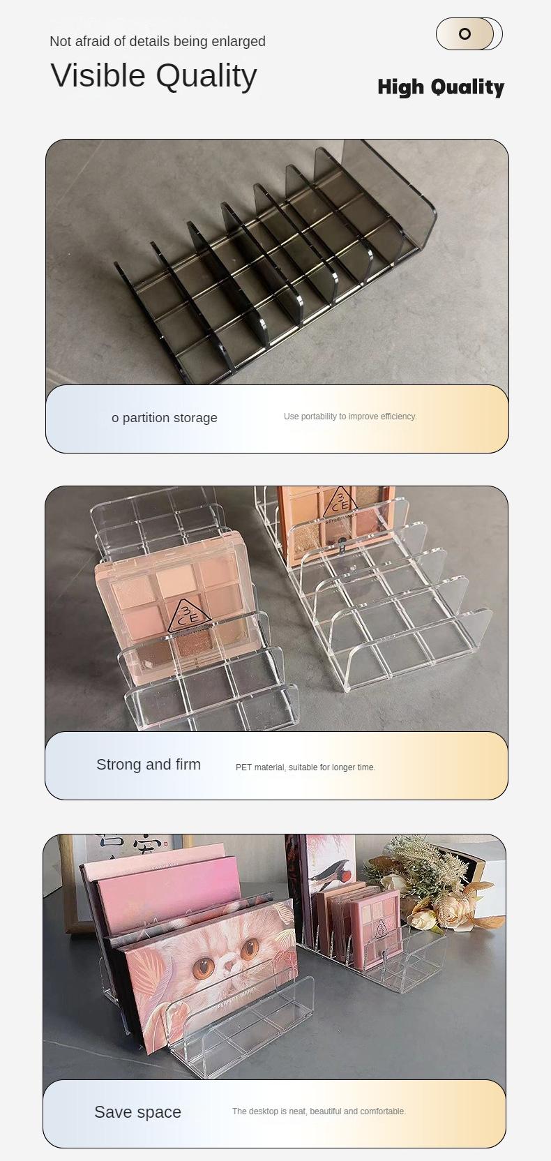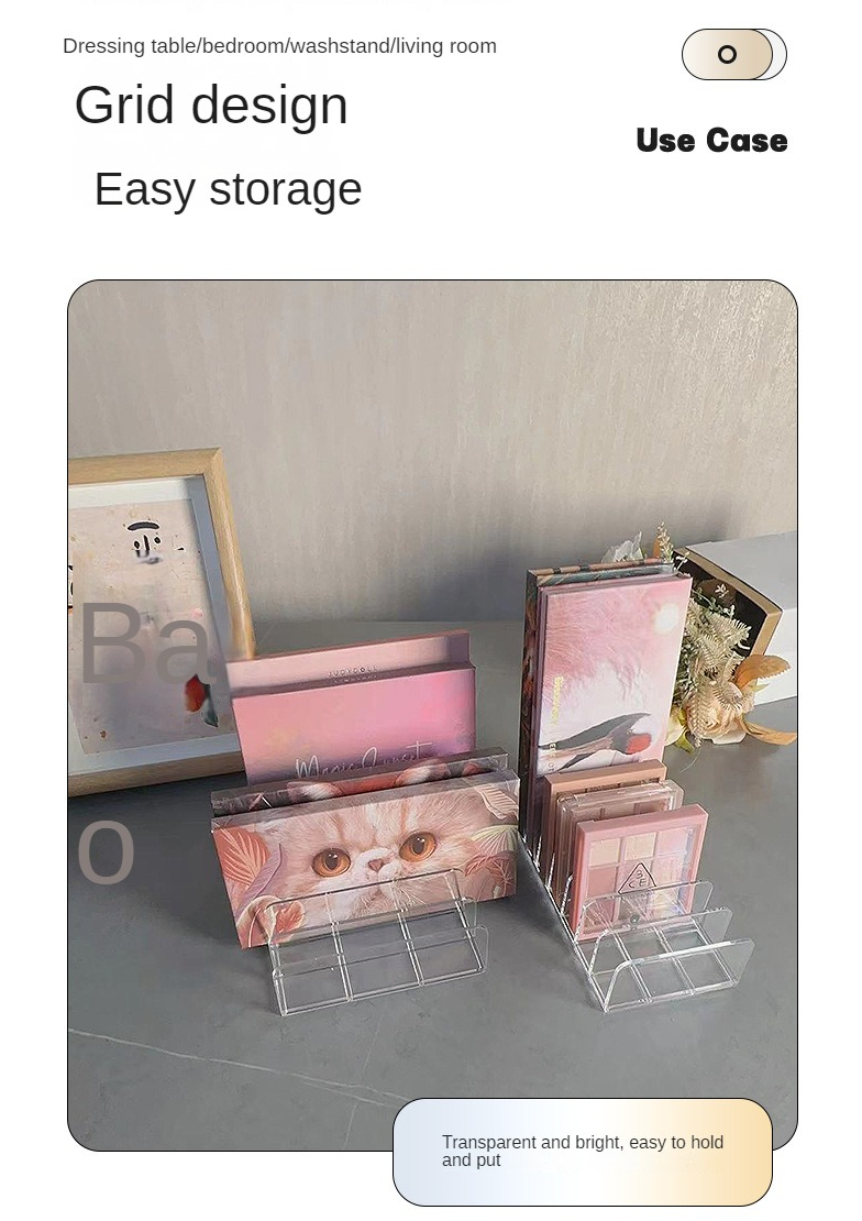Suitable for the organization of cosmetics, especially eyeshadow, books, notebooks, plates, etc